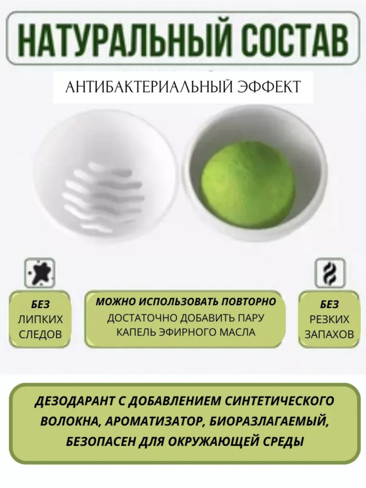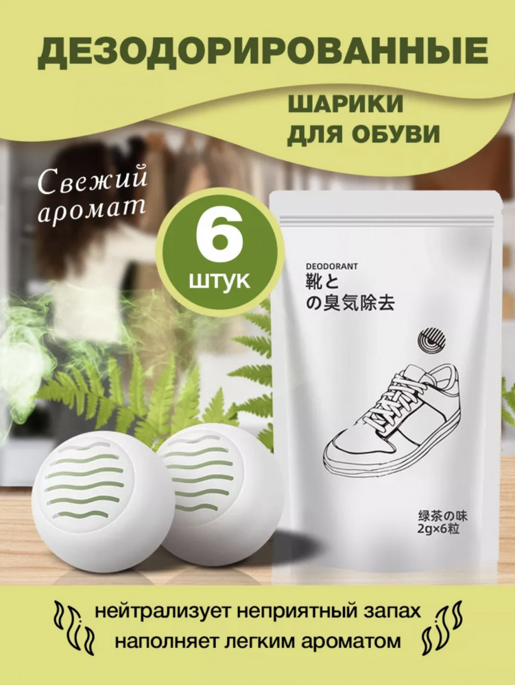 💳 Оплатить за товар можно при получении 🇰🇿 Есть бесплатная доставка по Казахстану от 1 дня 🎁 Копите бонусы с каждой покупки Освежители для обуви имеют приятный аромат. Отлично справляются с неприятными запахами. Современное, высокоэффективное средство-дезодорант для обуви в шариках, для комплексного антибактериального ухода. Уничтожает микроорганизмы, микробы, бактерии. Не марает поверхности. Эффективно устраняет запах, придавая нежный аромат зеленого чая. Создает защиту и свежесть. Подходит для всех видов обуви (кроссовок, ботинок, сапог и др). Так же рекомендован как освежитель, для использования в бельевых шкафах, обувницах, спортивных сумках, автомобилях. Не содержит вредной химии, безопасен для людей, животных и окружающей среды. Если вам вдруг начинает казаться что шарики больше не пахнут, просто потрясите их немного, это вернет им аромат. |