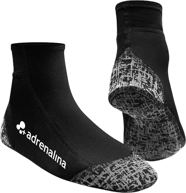 Носки для пляжного волейбола +Adrenalina Sand — идеальный продукт для тех, кто хочет заниматься этим видом спорта круглый год. Верхняя часть носков изготовлена из эластичной и дышащей ткани, позволяющей легко надевать их. В центральной части находится термоткань с такой же степенью эластичности, которая защищает стопу от холода даже при низкой температуре песка. Эти два материала идеально обволакивают стопу, следуя за движениями, и, благодаря своей воздухопроницаемости, помогают избежать чрезмерного потоотделения. Материал, используемый для подошвы, обеспечивает высокую устойчивость к истиранию на песке, не мешая чувствовать поверхность. Эта специальная ткань накладывается на пятку и пальцы ног, наиболее нагруженные участки во время прыжковых фаз, и поэтому более подвержены износу.