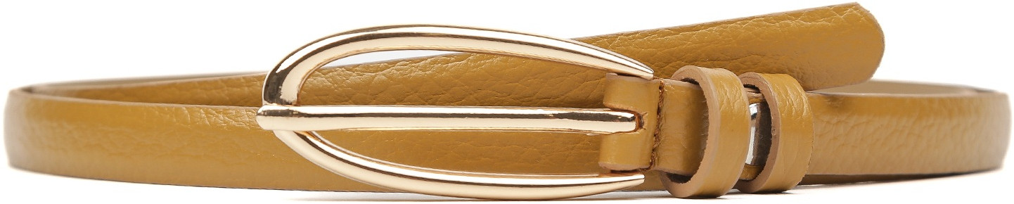 Изящный дутый ремень в горчичном оттенке выполнен из мягкой зернистой кожи. Тыльная сторона — из гладкого плотного спила. Модель дополнена пряжкой из прочного гальванического сплава с покрытием — золото. Пряжка крепится к изделию с помощью винта, что позволяет легко отрегулировать длину. Две шлевки из зернистой кожи в тон изделию: одна закреплена, вторая — подвижная.