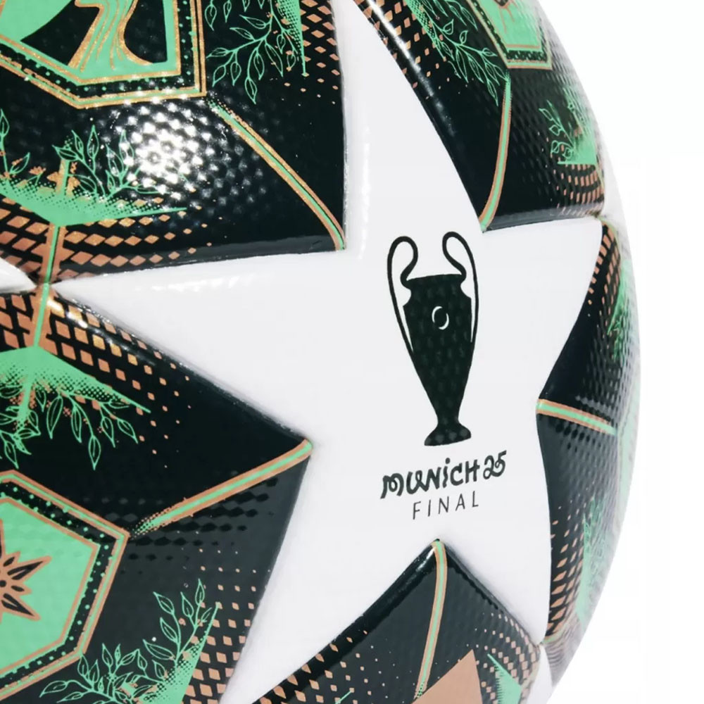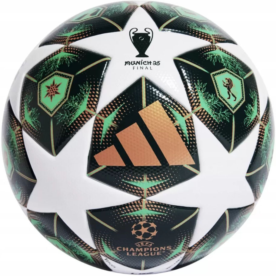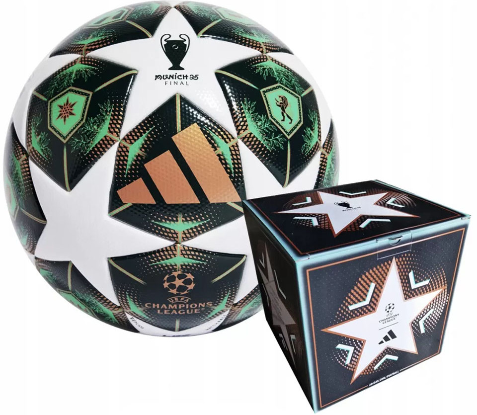 Футбольный мяч Adidas UCL League Box — матчевая реплика официального мяча Лиги Чемпионов УЕФА 24/25. Дизайн этого футбольного мяча вдохновлен патинированными медными куполами Мюнхена (город-хозяин финала) и захватывающей дух природой Баварии. Мяч представлен в элегантной тематической коробке Лиги чемпионов, украшенной официальными цветами и логотипами соревнований Champions League UEFA.
