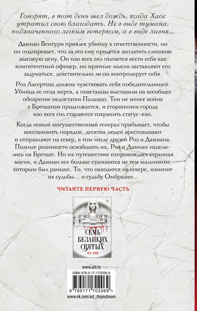 💳 Оплатить за товар можно при получении 🇰🇿 Есть бесплатная доставка по Казахстану от 1 дня 🎁 Копите бонусы с каждой покупки Серия: Mainstream. Фэнтези Дамиан Вентури привлек убийцу к ответственности, но он подозревает, что за это ему придется заплатить слишком высокую цену. Он изо всех сил пытается вести себя как компетентный офицер, но мрачные мысли заставляют его задуматься, действительно ли он контролирует себя. Роз Ласертоза должна чувствовать себя победительницей. Убийца ее отца мертв, а повстанцы выставили на всеобщее обозрение недостатки Палаццо. Тем не менее война с Бречаатом продолжается, и сторонники города изо всех сил стараются сохранить статус-кво. |
