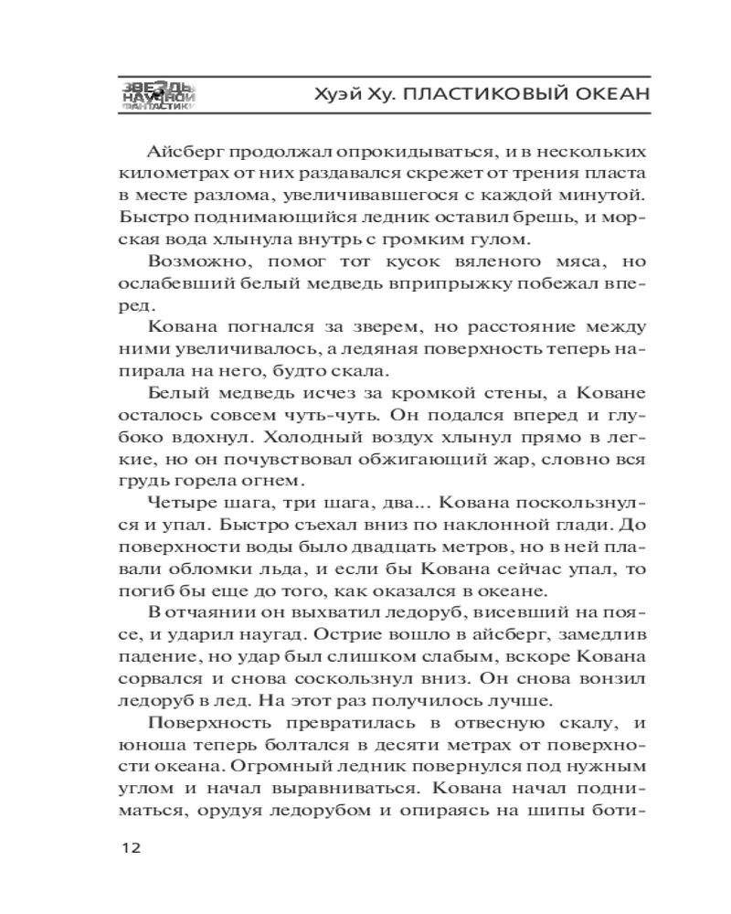 💳 Оплатить за товар можно при получении 🇰🇿 Есть бесплатная доставка по Казахстану от 1 дня 🎁 Копите бонусы с каждой покупки Серия: Звезды научной фантастики Недалекое будущее. Юный инуит Кована идет охотиться на тюленей, чтобы пройти инициацию, как его предки. Но у него ничего не получается, к тому же он оказывается на огромной льдине, отколовшейся от материка, вместе с белым медведем, пораженным загадочной болезнью. Выпускник университета Ватанабэ Ю отправляется в море вместе с рыбаками родной деревни. Он еще не знает, какими кошмарами обернется его решение, и сам скрывает немало секретов. Биоинженер Ли Шили работает над выведением растительных гибридов, способных разлагать пластик, и добивается поразительных, но чрезвычайно разрушительных результатов. Ральф Гейбл, бывший солдат, а ныне активист, занимающийся спасением дельфинов, совершает аварийную посадку на странном безжизненном острове посреди Тихого океана, которого нет ни на одной карте. И все они вскоре столкнутся с чем-то ужасным, новой формой жизни, идеально приспособленной для существования на изменившейся Земле, чье появление может стать концом для всей планеты. |
