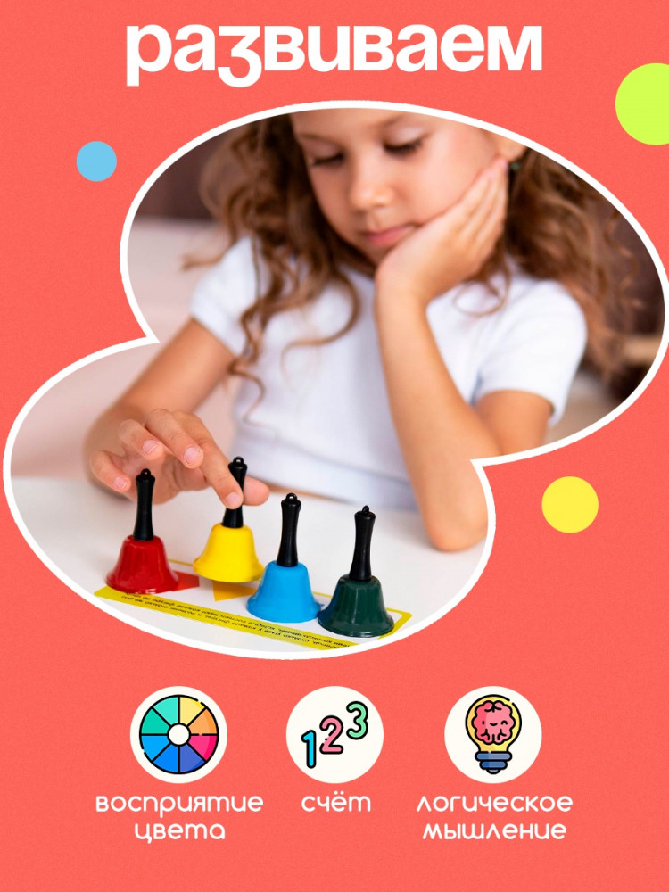 💳 Оплатить за товар можно при получении 🇰🇿 Есть бесплатная доставка по Казахстану от 1 дня 🎁 Копите бонусы с каждой покупки Развивающий набор станет любимой игрушкой вашего ребёнка! В нём малыш обнаружит 4 цветных звонких колокольчика. Они помогут ему запомнить цвета, цифры, научиться считать и решать много полезных заданий с карточек! |