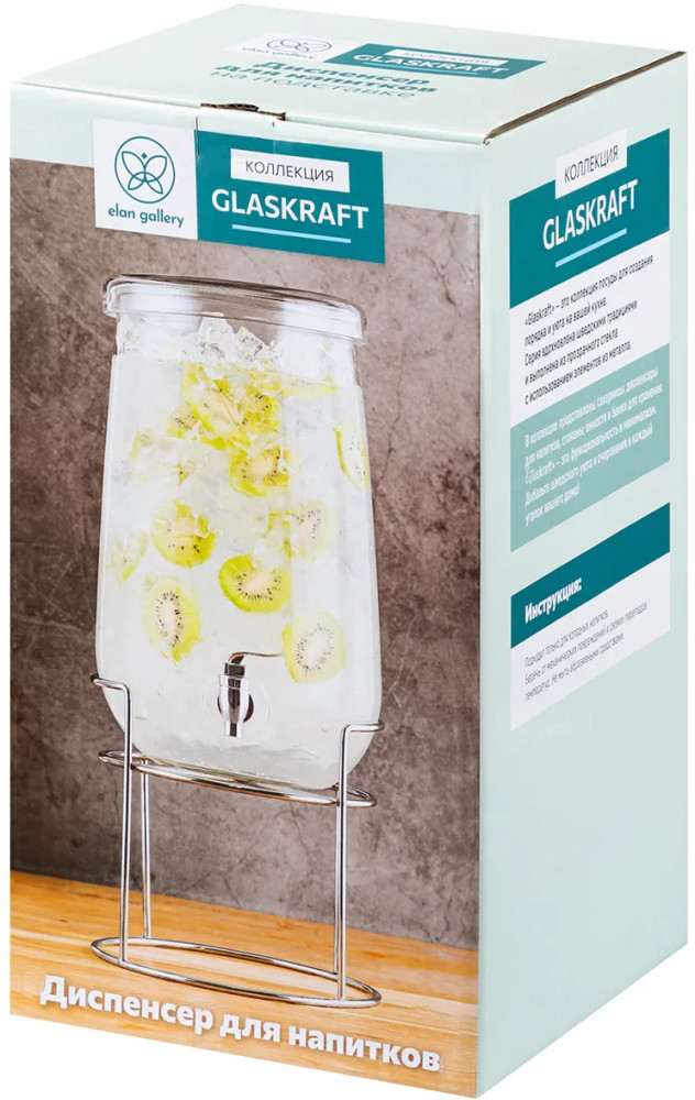 Не использовать абразивные моющие средства. Лимонадница поставляется в стильной картонной коробке. Такой сервировочный аксессуар для домашнего бара станет оригинальным подарком вашим родным или друзьям на любой праздник. Благодаря красивой коробочке не понадобится подарочная упаковка.«Glaskraft» — это функциональность и минимализм. Добавьте шведского уюта и очарования в каждый уголок вашего дома! В коллекции бренда Elan Gallery представлено много функциональных товаров для дома, в том числе кухонных принадлежностей. Выберите вариант на свой вкус!