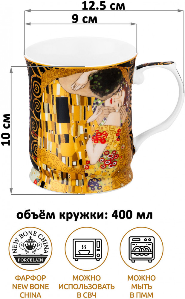 Чашка украшена роскошной репродукцией картины художника Густава Климта. В коллекции можно найти много красивой посуды и предметов декора с изображениями по мотивам шедевров мировой живописи! Кофейная кружка поможет провести множество приятных завтраков с капучино и латте, а также уютные чайные вечера с конфетами, вафлями, другими десертами и сладостями. Подойдёт ценителям чая и кофе, которые любят пить из красивой и необычной посуды. Согрейтесь зимой любимым горячим напитком: какао с маршмэллоу, ягодным чаем, горячим шоколадом. Летом освежитесь домашним лимонадом или морсом. Декоративная кружечка добавит эстетики любому чаепитию.