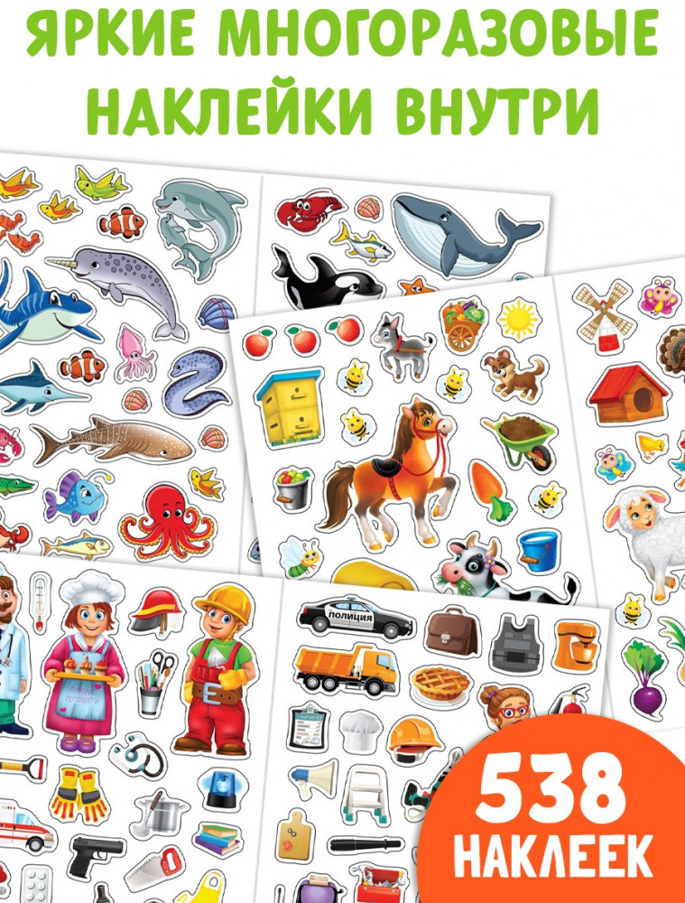 💳 Оплатить за товар можно при получении 🇰🇿 Есть бесплатная доставка по Казахстану от 1 дня 🎁 Копите бонусы с каждой покупки С многоразовыми наклейками обучение превратится в интересное занятие. Играйте вместе с ребёнком, разгадывайте загадки и изучайте: какие бывают профессии, кто живёт в лесу и на ферме, что происходит с природой в разное время года. |