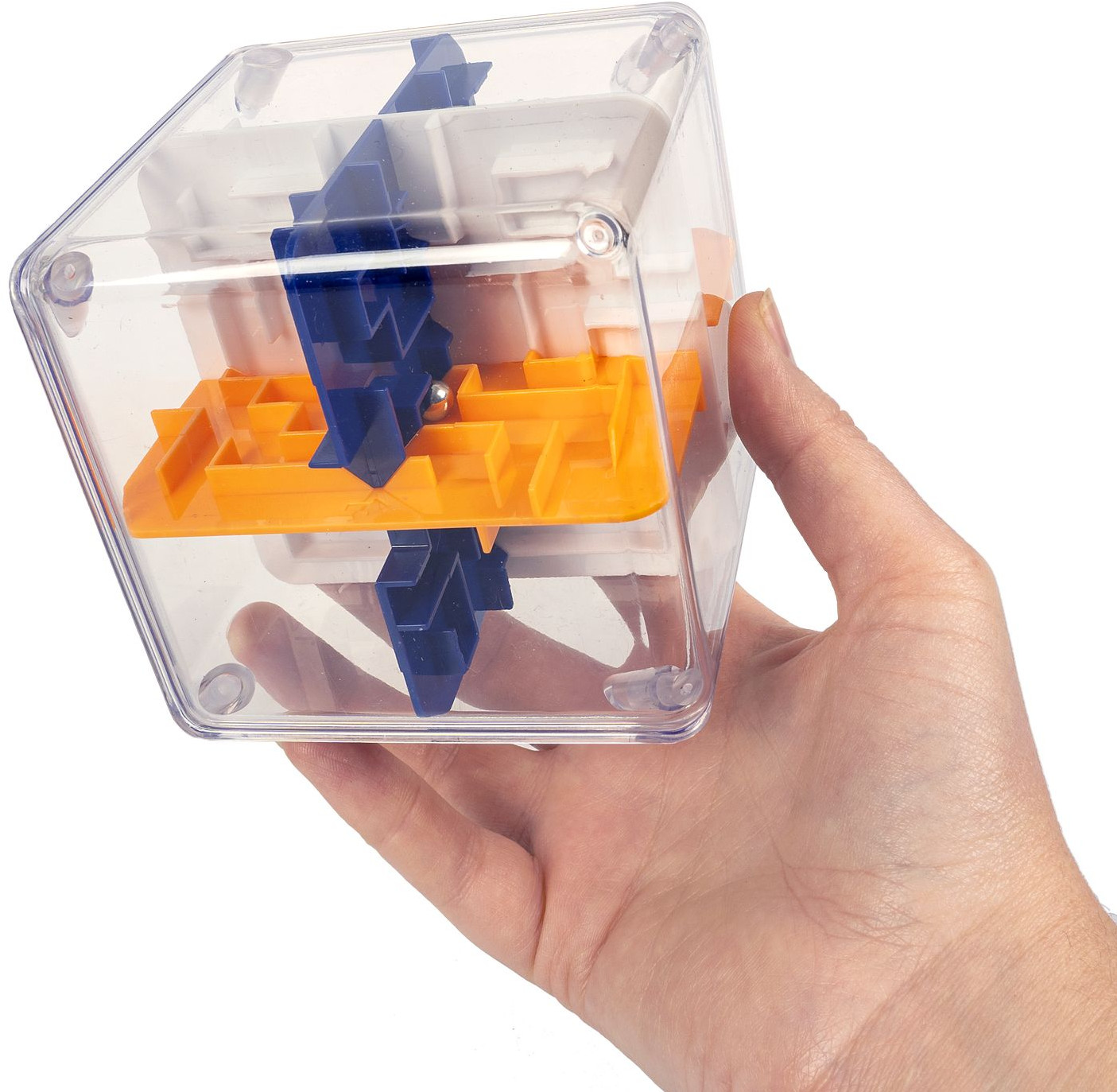 Bondibon Игра-головоломка «3D-лабиринт»В данный момент этот товар отсутствует в продаже. Возможно, у нас найдется аналогичный или похожий товар здесь. Серия: Smart КУБ Развивашка для детей и развлечение для взрослых! Головоломка для всей семьи 3D лабиринт Smart КУБ — это вызов для ума и ловкости рук. Вращайте и наклоняйте игрушку в руках и проведите металлический шарик через сложную систему лабиринтов внутри кубика. Под прозрачным корпусом логической игры расположена конструкция, состоящая из 8 секций, с тремя поверхностями лабиринта каждая. Путь от старта до финиша проходит через 24 стороны головоломки, разделенные на восемь игровых уровней. Одно неверное движение, и придется начать всё сначала! Игра подходит для всей семьи и отлично развивает пространственное мышление, логику и мелкую моторику ребенка. Соревнуйтесь с друзьями, кто первым доберется до финиша. Компактный размер и цельная конструкция кубика позволяют брать его с собой в дорогу. Игрушка работает без батареек. Длина грани — 9.5 см. 3D головоломки Smart КУБ выполнены из безопасных материалов и соответствуют высоким стандартам качества бренда Бондибон. |