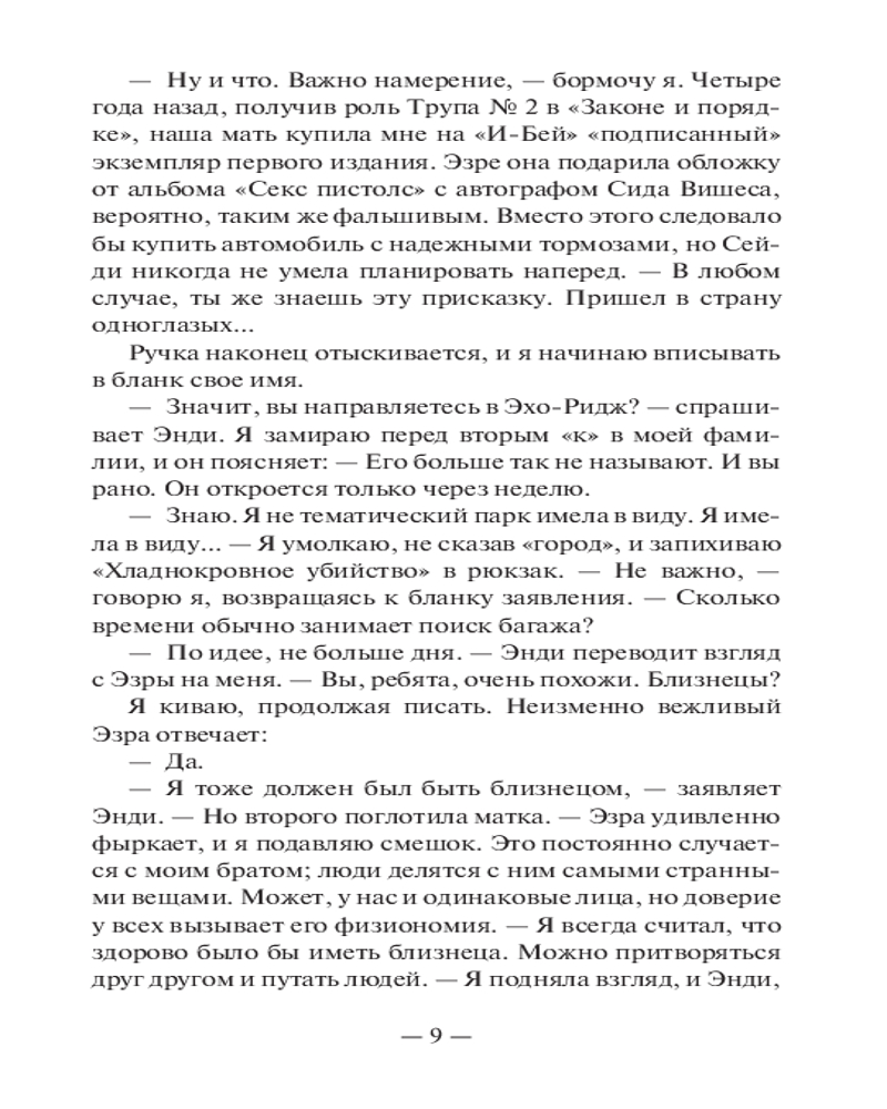 💳 Оплатить за товар можно при получении 🇰🇿 Есть бесплатная доставка по Казахстану от 1 дня 🎁 Копите бонусы с каждой покупки Серия: Neoclassic: Расследование Эхо-Ридж. Очаровательный городок, будто сошедший с рекламного проспекта. Городок, где теперь предстоит жить старшекласснице Эллери и ее брату-близнецу. Городок, в котором произошла череда загадочных происшествий... Недавно на одной из улиц города был насмерть сбит учитель местной школы — виновник скрылся с места аварии. Пять лет назад — безжалостно убита школьная «королева красоты», выпускница Лейси... А еще несколькими годами ранее из Эхо-Ридж бесследно исчезла Сара — родная тетя Эллери. Могут ли все эти случаи быть как-то связаны? Эллери и ее одноклассник Малкольм решают во всем разобраться. С каждым днем они становятся все ближе к истине, но какую цену им придется за это заплатить? |