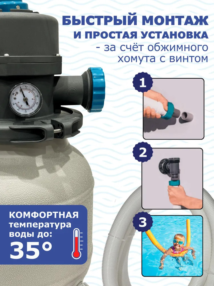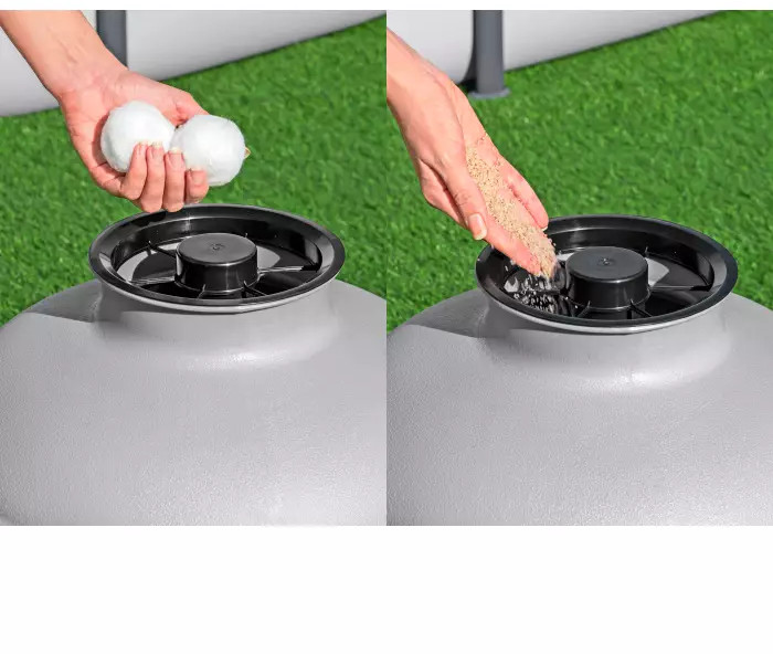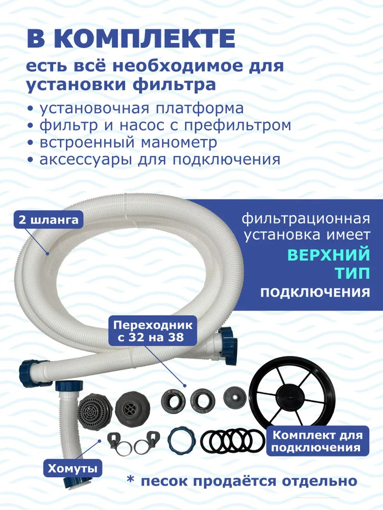 • для фильтрации требуется песок (20 кг) или фильтрующие шарики Polysphere™ #58475 ;