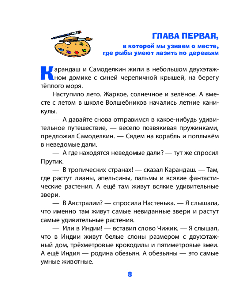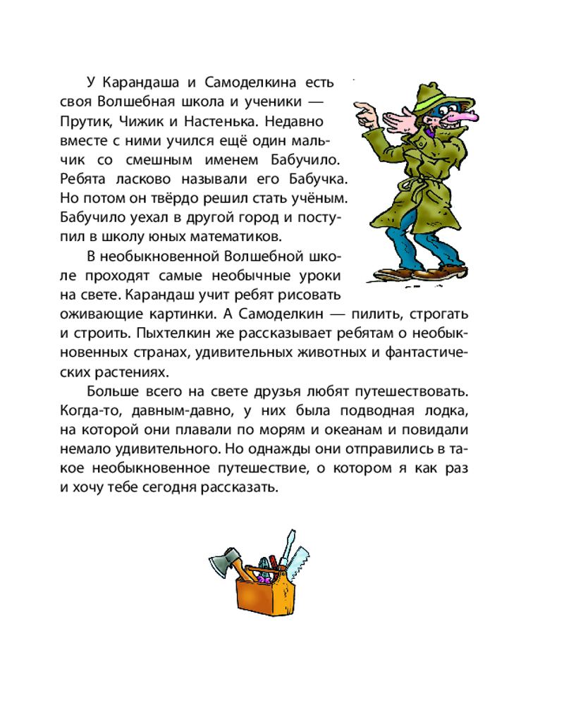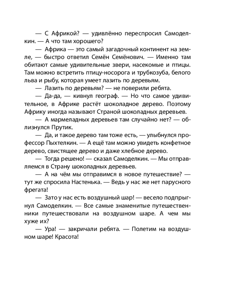 💳 Оплатить за товар можно при получении 🇰🇿 Есть бесплатная доставка по Казахстану от 1 дня 🎁 Копите бонусы с каждой покупки Серия: Карандаш и Самоделкин с иллюстрациями Юрия Якунина Самые весёлые, необыкновенные, увлекательные приключения маленьких волшебников и их друзей — для самых верных и преданных читателей! Удобный формат, твёрдый переплёт, забавные яркие иллюстрации, белая бумага и чёткий, хорошо читаемый шрифт. Где находится удивительная Страна шоколадных деревьев? Конечно, это знойная, манящая, полная чудес Африка! Маленькие волшебники и их верные друзья раскроют все её секреты, познакомятся с обитателями, попробуют самые экзотические лакомства и даже... попадут в плен к снежному человеку! Но ни трудности дороги, ни коварство зловредных разбойников — пирата Буль-Буля и шпиона Дырки — не остановят Карандаша и Самоделкина! Весёлые полноцветные иллюстрации к книге нарисовал современный художник Юрий Якунин. |