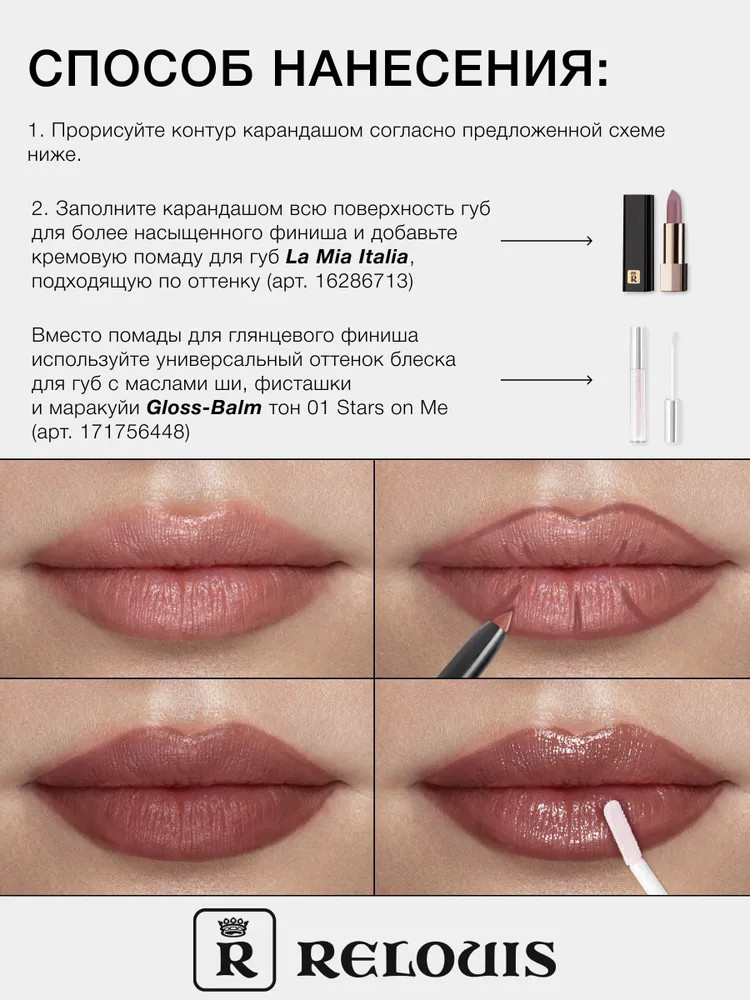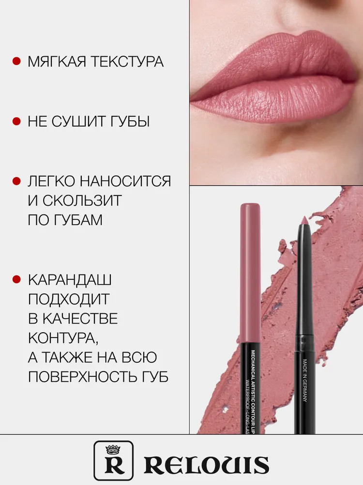 RELOUIS Карандаш для губ механический «Artistic Contour», тон 08 Nude Muse
