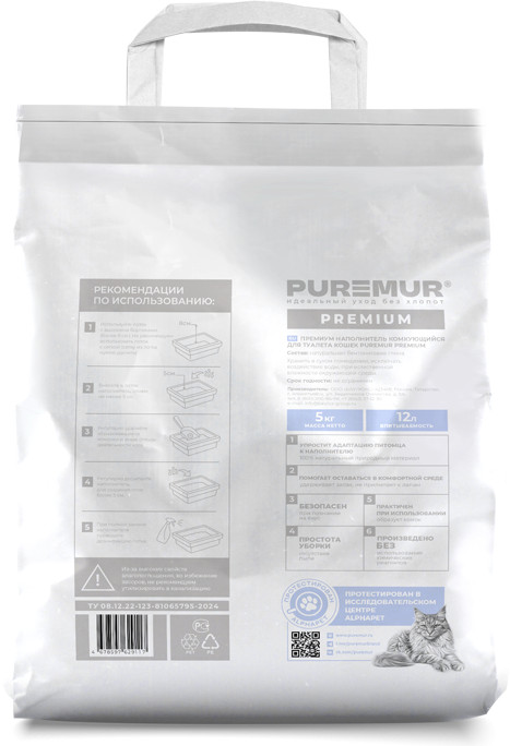 PureMur Наполнитель для кошачьего туалета комкующийся бентонитовый «Premium»