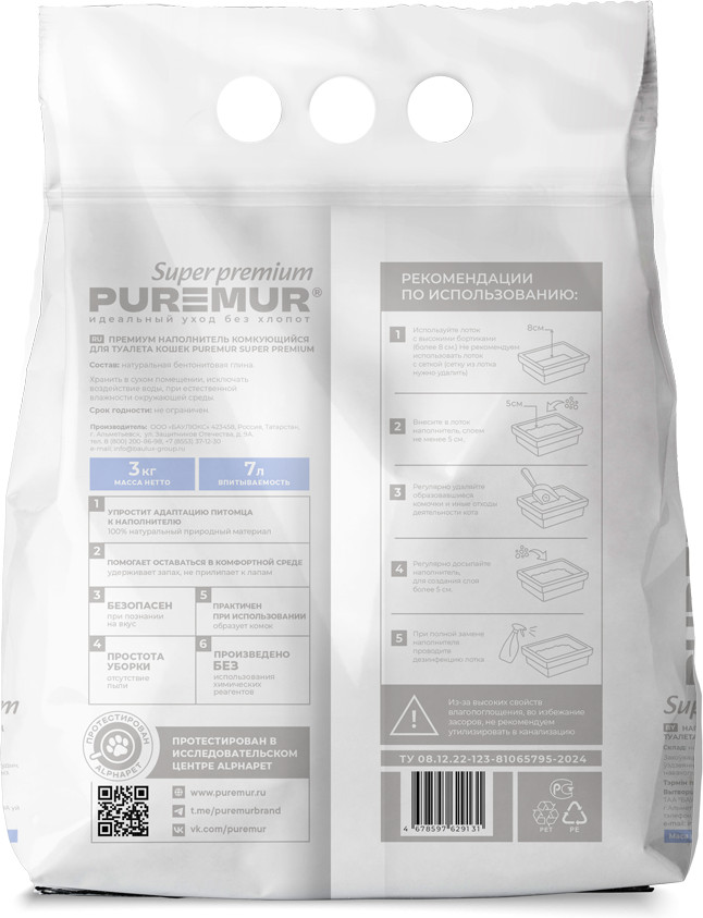 PureMur Наполнитель для кошачьего туалета комкующийся бентонитовый «Super Premium»