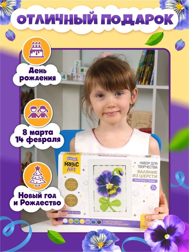 Десятое королевство Набор для валяния из шерсти «Анютины глазки»-25% +102