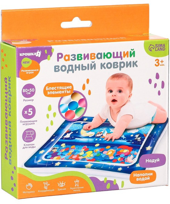 В данный момент этот товар отсутствует в продаже. Возможно, у нас найдется аналогичный или похожий товар здесь. Серия: Акваковрики Игры с водой для детей — одно из любимых, интересных и полезных занятий. Особенность акваковрика в том, что малыш будет чувствовать себя, как в бассейне, но при этом оставаться сухим. Водный коврик представляет собой прозрачный матрас для детей, разделенный на независимые друг от друга отсеки. Один отсек игрового коврика заполняется водой, а второй — воздухом, превращаясь в бортики. Внутри развивающего акваковрика находятся игрушки, которые будут плавать после заполнения водой резервуара. Ребёнок будет стараться достать до водных обитателей, таким образом тренируя координацию, мелкую моторику, хватательный рефлекс. А во время ползания по коврику мышцы малыша будут развиваться и усиливаться.