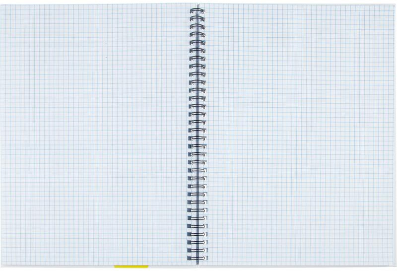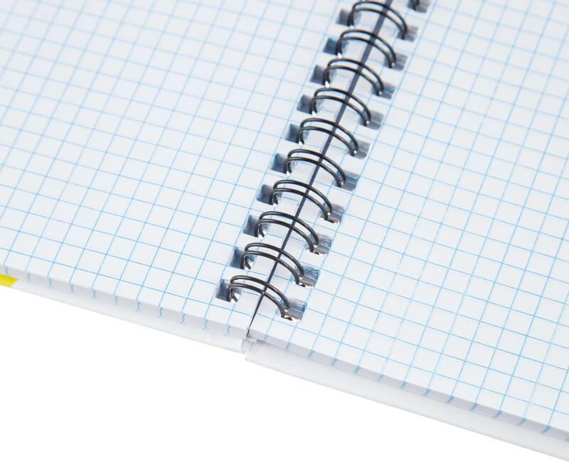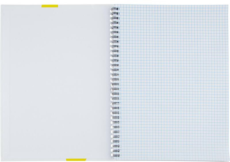 Тетрадь изготовлена из плотного переплетного картона, обклеенного мелованной бумагой с печатью и матовой ламинацией. На спирали (спираль слева). Внутренний блок — офсет 60 г/кв. м с белизной 100%. Линовка — клетка. |