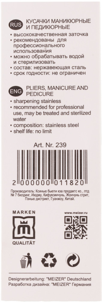 Meizer Кусачки-клиппер для ногтейВ данный момент этот товар отсутствует в продаже. Возможно, у нас найдется аналогичный или похожий товар здесь. Благодаря невероятно острым лезвиям, кусачки Meizer отрезают ноготь точно и ровно, не ломая и не сминая его. Эргономичный дизайн кусачек обеспечивает максимальное удобство во время ухода за ногтями. После подстригания ногтей кусачками смягчите резкие края ногтей с помощью пилки. Благодаря своему высокому качеству кусачки Meizer прослужат вам долгое время даже при регулярном использовании. |