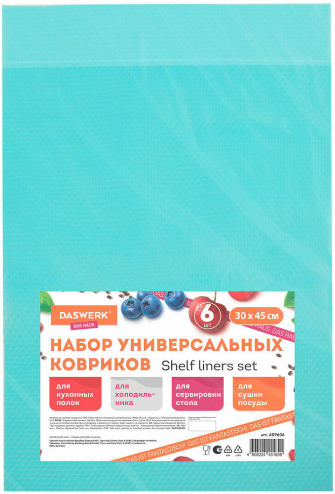 Набор универсальных ковриков Daswerk обеспечит надежную защиту поверхностей от влаги, жира, пятен, а также от царапин, сколов и других механических повреждений. Коврики Daswerk станут незаменимым аксессуаром в доме и на даче! Набор универсальных хозяйственных ковриков Daswerk включает шесть прямоугольных ковриков размером 30×45 см. Эти коврики станут незаменимыми в доме и на даче, обеспечивая защиту любых поверхностей от влаги, жира, пятен, а также от царапин и других механических повреждений.