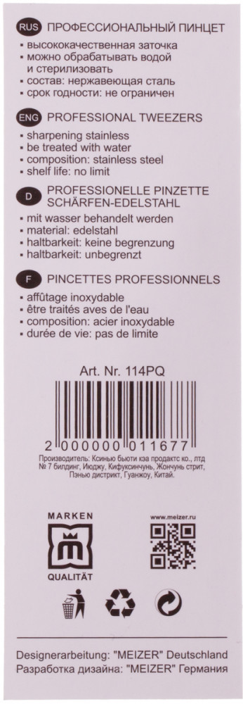 Meizer ПинцетВ данный момент этот товар отсутствует в продаже. Возможно, у нас найдется аналогичный или похожий товар здесь. Профессиональный инструмент для удаления нежелательных волос. Маникюрный пинцет острый подойдет мастерам-бровистам для оформления и выщипывания бровей, а также для домашнего использования. Идеальное смыкание, заточка поможет справиться с короткими и вросшими волосками. Данный тип щипчиков самый распространённый и простой в использовании. Он состоит из двух рычагов, соединённых в одной точке, надавливание на них смыкает два заострённых края инструмента , что позволяет захватывать. |