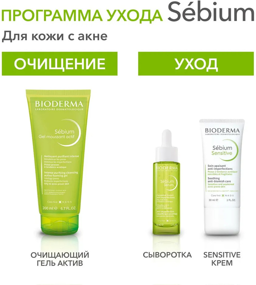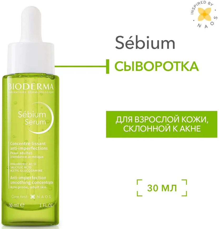 Bioderma Сыворотка для лица против несовершенств, постакне и морщин «Serum»