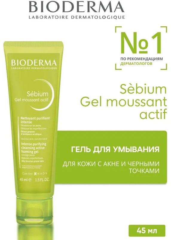 Bioderma Гель для умывания для жирной и проблемной кожи «Gel moussant actif»