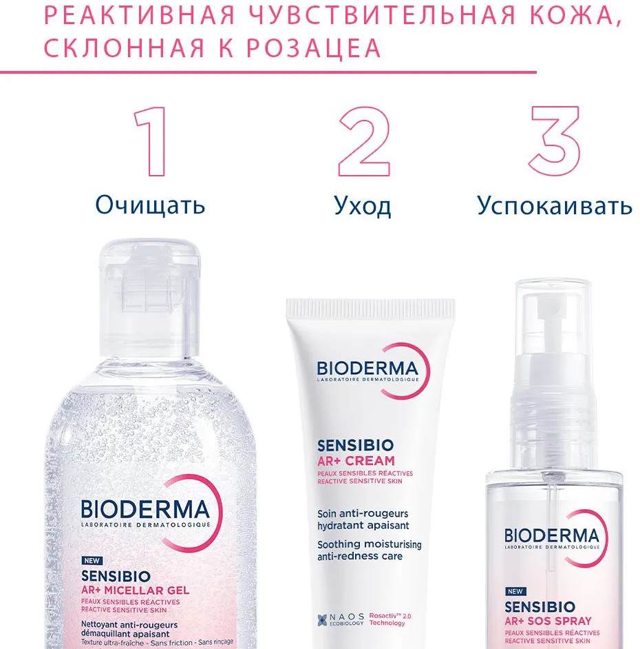 Bioderma Гель мицеллярный для реактивной чувствительной кожи лица, склонной к розацее «AR+»