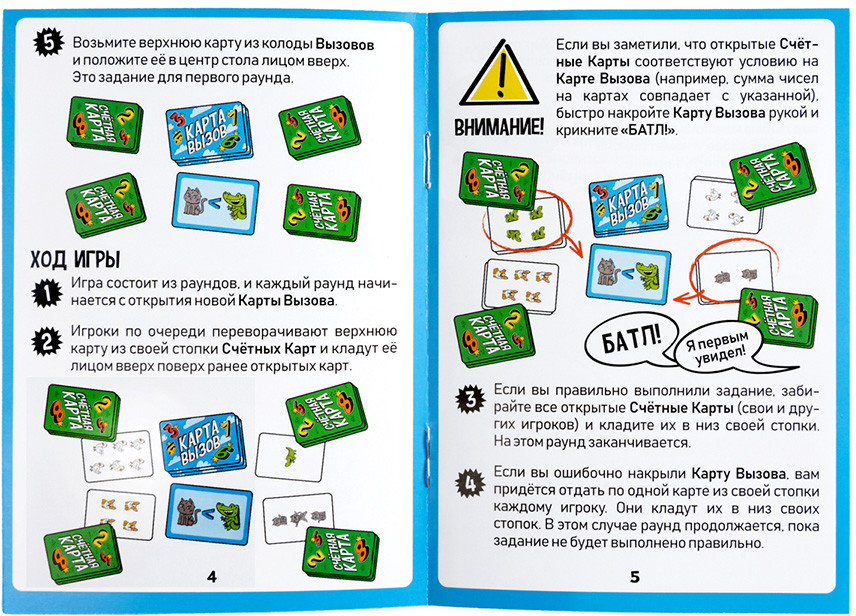 💳 Оплатить за товар можно при получении 🇰🇿 Есть бесплатная доставка по Казахстану 🎁 Копите бонусы с каждой покупки Настольная игра «Счётный батл» — это увлекательная игра на счет и реакцию для большой компании. В игре могу принимать участие от 2 игроков. |