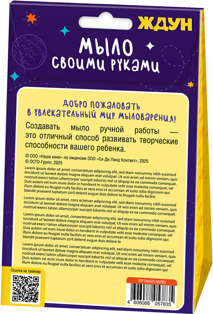 💳 Оплатить за товар можно при получении 🇰🇿 Есть бесплатная доставка по Казахстану от 1 дня 🎁 Копите бонусы с каждой покупки Серия: Ждун Набор для изготовления мыла «Жду чистоты!» — набор, с помощью которого ребенок изготовит кусочек мыла с изображением узнаваемого персонажа! Мыло, созданное своими руками, станет замечательным подарком, а также сделает гигиенические процедуры для малыша интересными и желанными. |