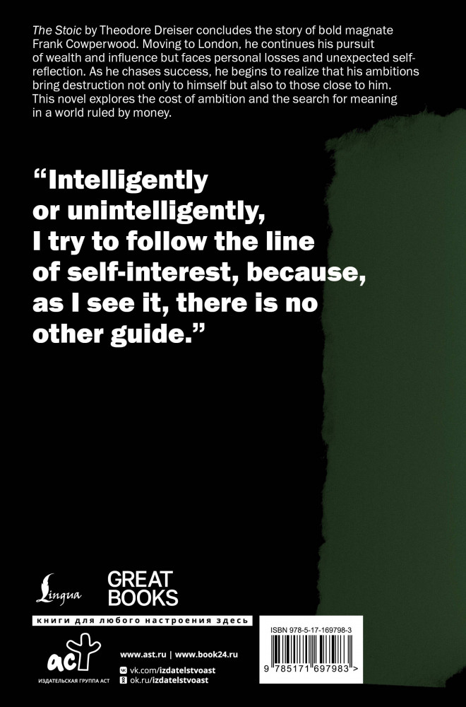 💳 Оплатить за товар можно при получении 🇰🇿 Есть бесплатная доставка по Казахстану от 1 дня 🎁 Копите бонусы с каждой покупки Серия: Great Books «Стоик» — последний роман из трилогии о судьбе Фрэнка Каупервуда, начатой в книгах «Финансист» и «Титан». В этом произведении Теодор Драйзер завершает историю амбициозного предпринимателя, для которого успех и деньги всегда были главными ориентирами. |