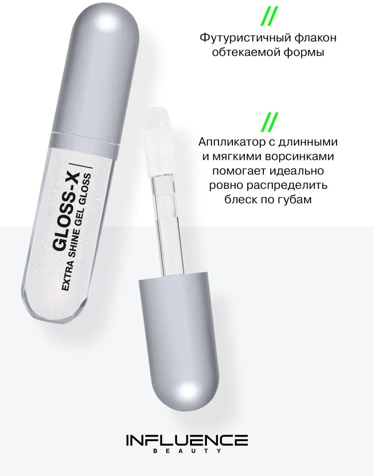 Influence Beauty Гель-блеск для губ «Gloss-X», тон 02 Прозрачный с серебряными блестками