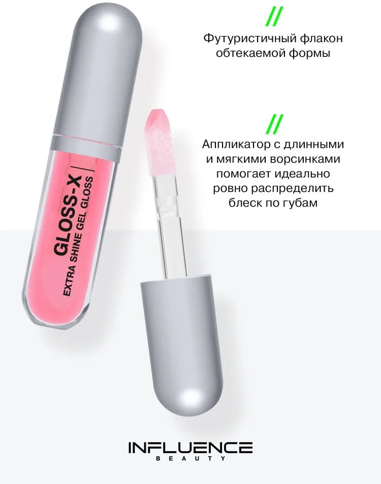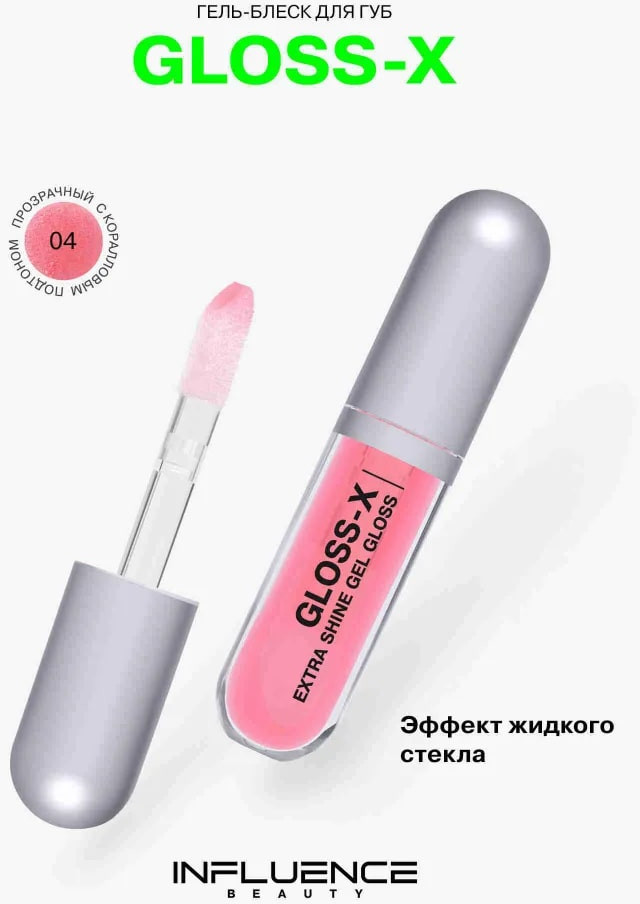 Influence Beauty Гель-блеск для губ «Gloss-X», тон 04 Прозрачный с коралловым подтоном