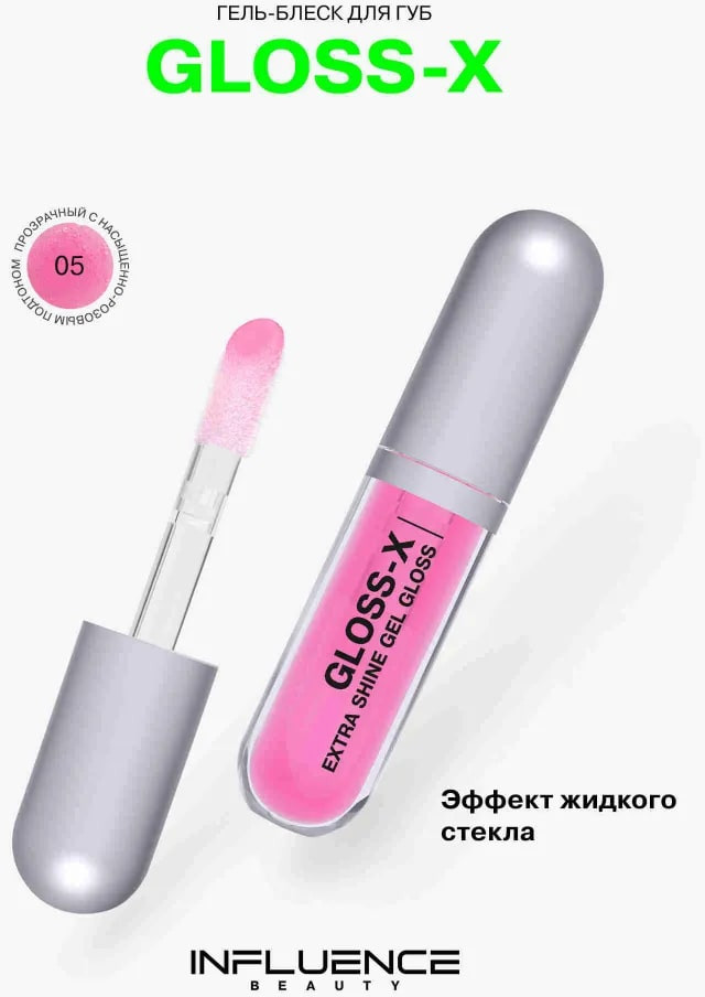 Influence Beauty Гель-блеск для губ «Gloss-X», тон 05 Прозрачный с насыщенно-розовым подтоном
