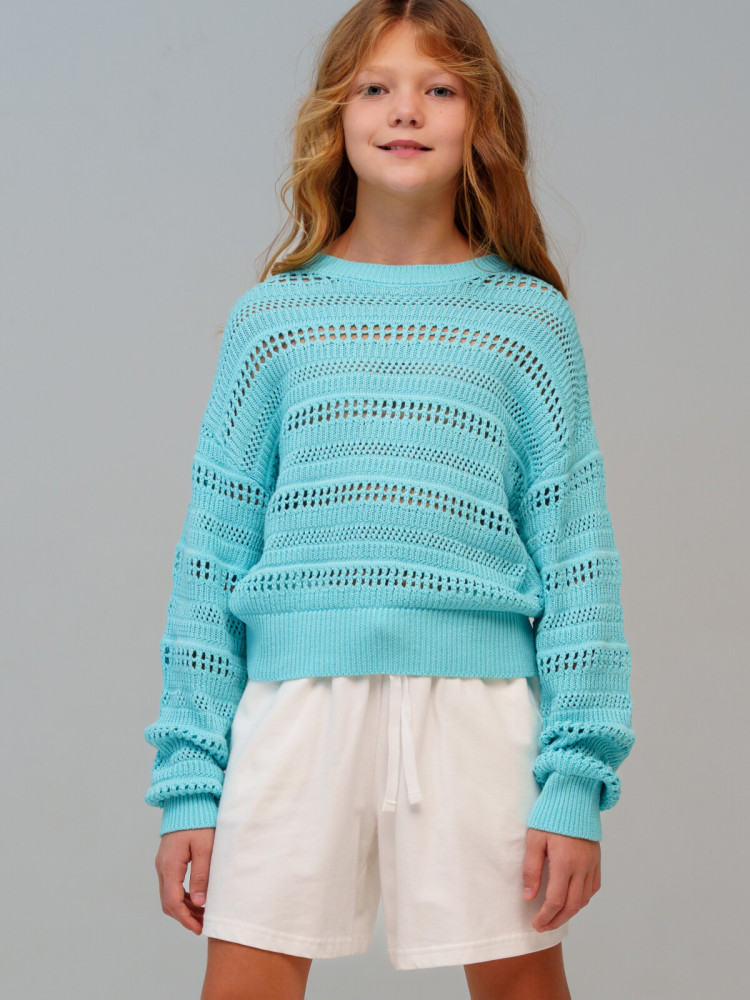 Джемпер для девочки подростка.Джемпер ажурной вязки с содержанием хлопка.