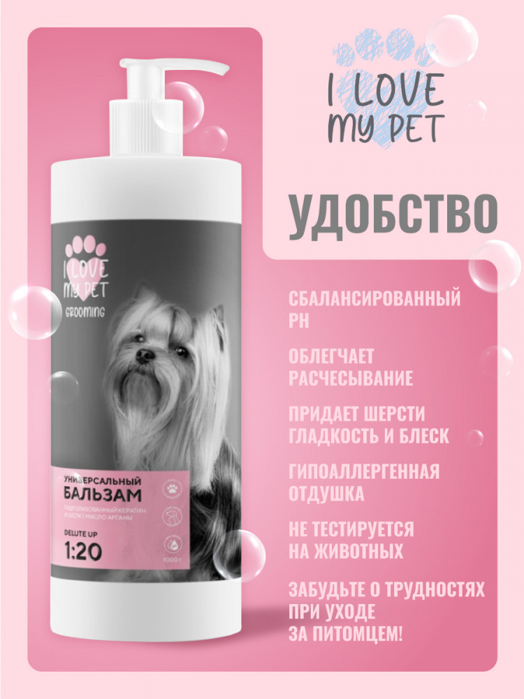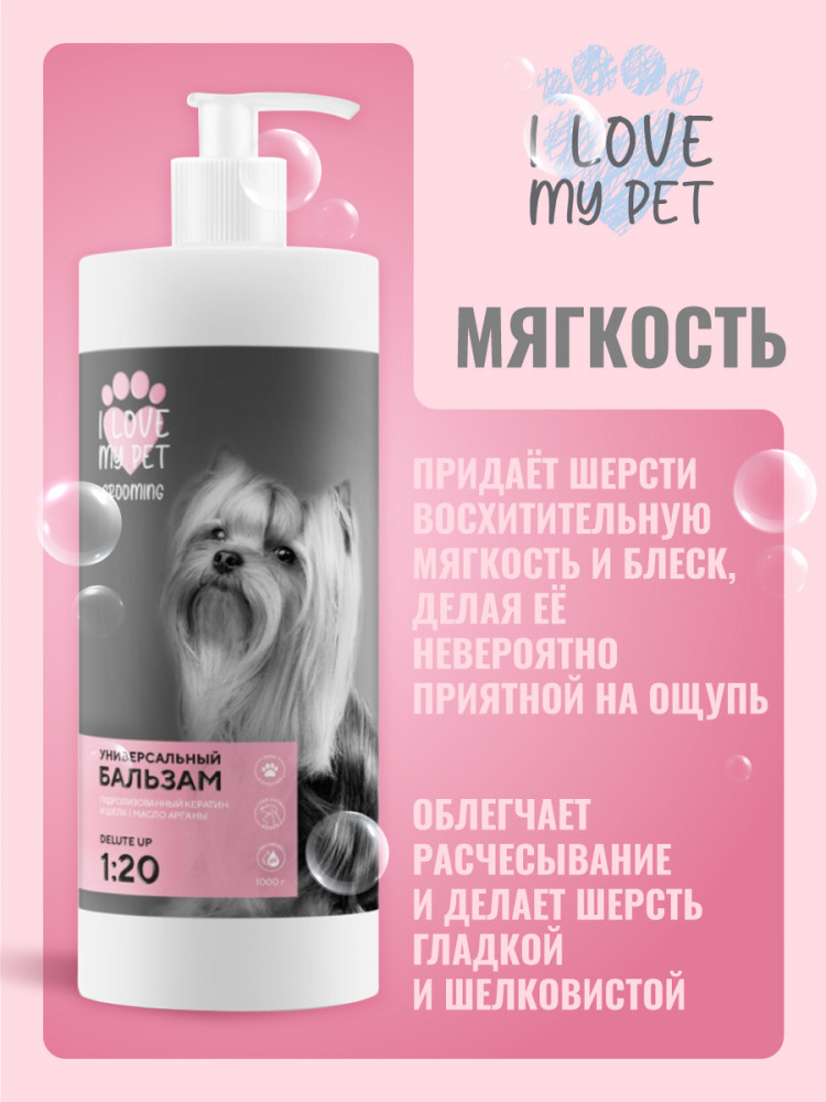 I love my pet Бальзам универсальный для шерсти животныхВ данный момент этот товар отсутствует в продаже. Возможно, у нас найдется аналогичный или похожий товар здесь. Бальзам универсальный для животных придает шерсти восхитительную мягкость и блеск, распутывает и предотвращает колтуны, оставляет приятный свежий аромат. Формула обладает питательными, увлажняющими и защитными компонентами. Гидролизованный шелк облегчает расчесывание и придает послушность шерсти. Кератин помогает дольше удерживать влагу. Предназначен для бережного ухода за шерстью собак и кошек любой длины и густоты. |