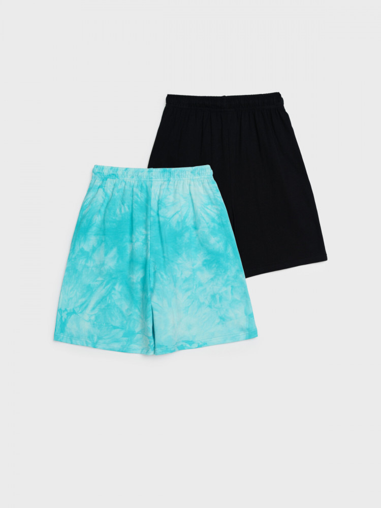 Набор шорт для девочки подростка. Комплект шорт из качественного и приятного на ощупь трикотажа джерси. Шорты на резинке со шнурком. Боковые карманы. Высокое содержание хлопка 95%. Благодаря наличию эластана в составе ткани изделие держит форму и меньше мнется. Модель выполнена из качественного и приятного на ощупь трикотажа.