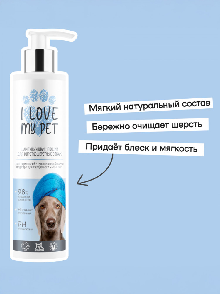 I love my pet Шампунь увлажняющий для короткошерстных собак-20% +95