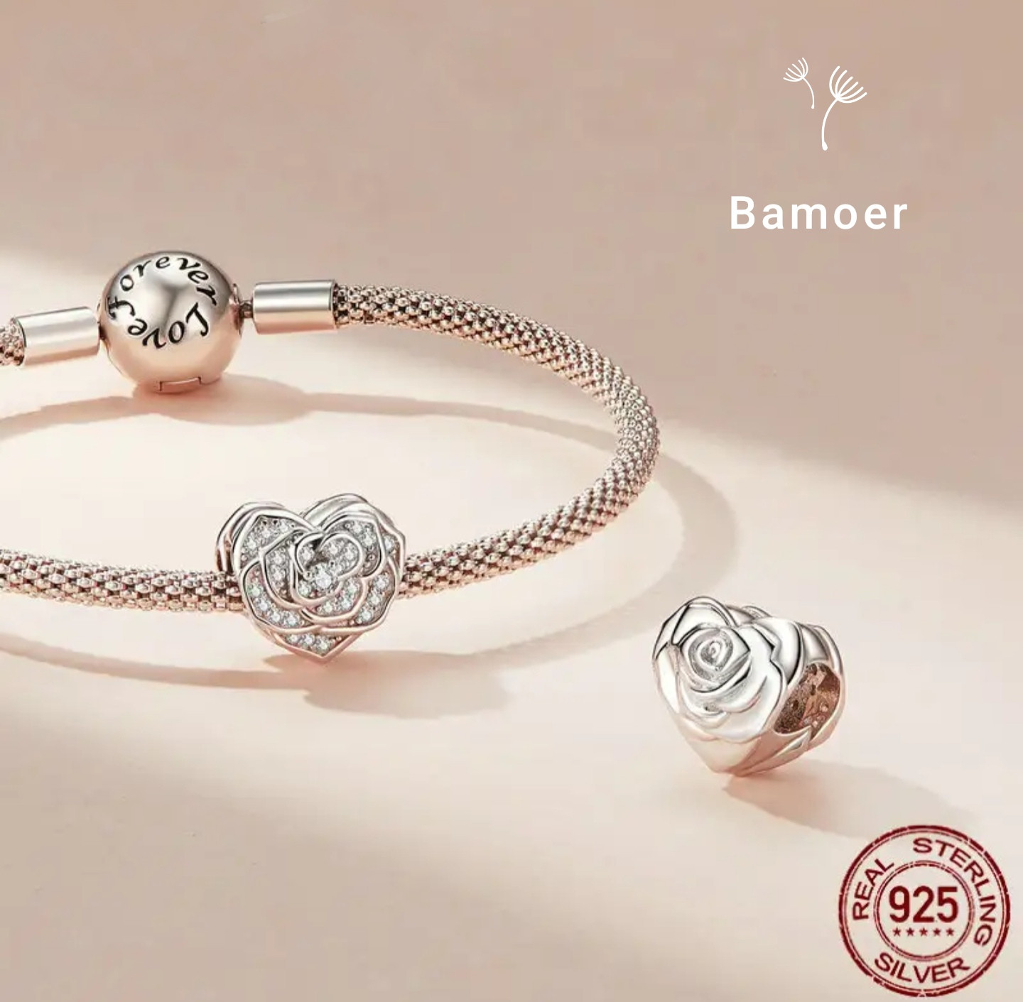 Bamoer Шарм из серебра «Кристальная роза»