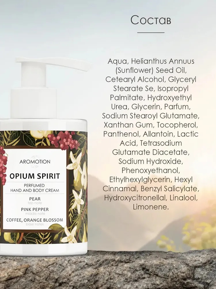 Aromotion Крем для рук и тела «Opium spirit»В данный момент этот товар отсутствует в продаже. Возможно, у нас найдется аналогичный или похожий товар здесь. Парфюмированный крем для рук и тела с дозатором Аромоушн Opium Spirit — это не просто косметика, а настоящий ритуал ухода за кожей, который сочетает в себе чувственность и роскошь. Основу средства составляют уникальные ухаживающие компоненты, такие как витамин Е, масло ши, манго и какао, которые обеспечивают коже необходимую упругость и бархатистость. Имеет стойкий запах, который раскрывается нотами розового перца, кофе и ванили. Этот крем с запахом духов — идеальный подарок маме, подруге, девушке, сестре или учителю. Он подходит как для женщин, так и для мужчин. Увлажняющий эффект и уходовая формула делают его незаменимым в повседневном уходе за кожей. |