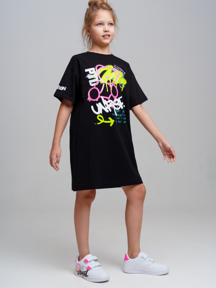 Платье для девочки подростка. Оверсайз платье-футболка из качественного и приятного на ощупь трикотажа джерси. Высокое содержание хлопка 95%. Благодаря наличию эластана в составе ткани изделие проще в уходе и держит форму. Модель выполнена из качественного и приятного на ощупь трикотажа.
