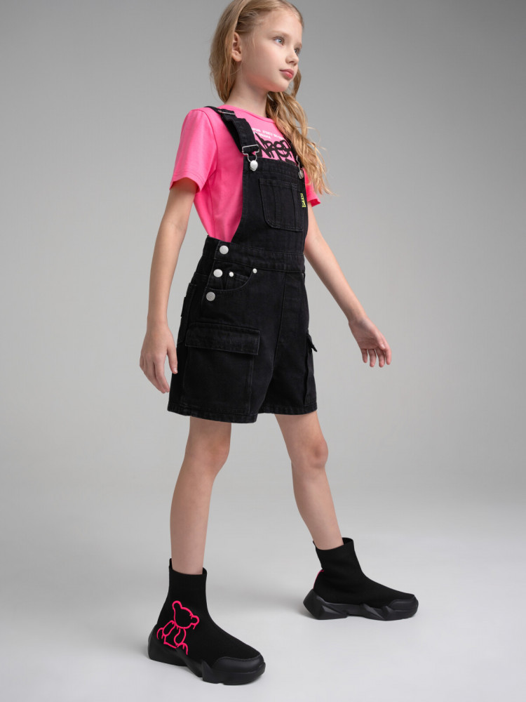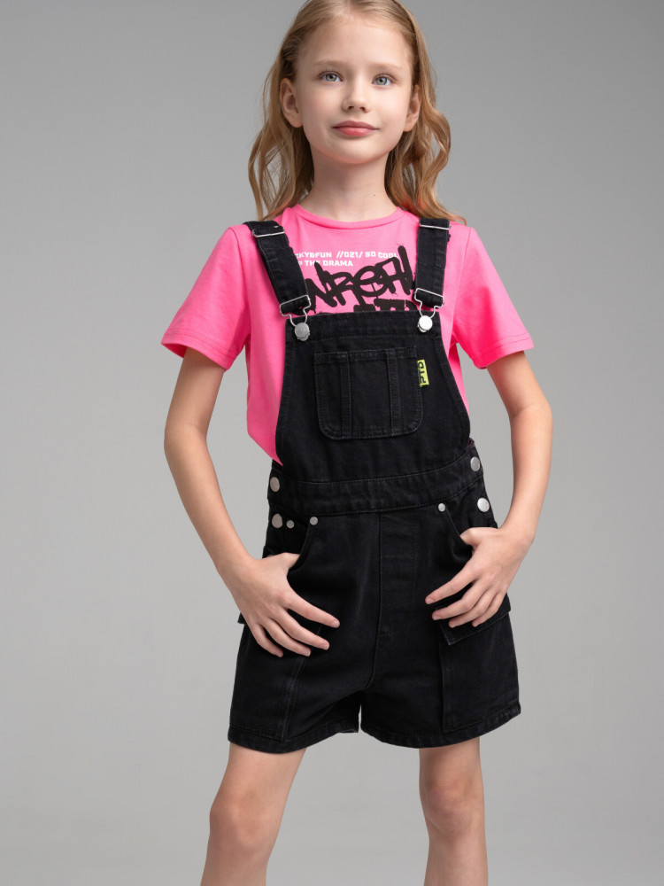 Полукомбинезон текстильный джинсовый для девочек | Emotion | PlayToday