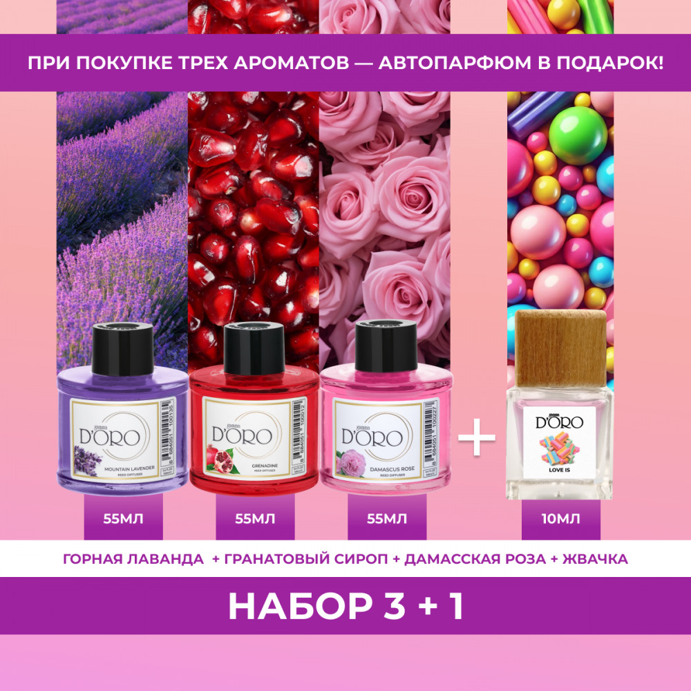 лаванда, роза, гранат, жвачка