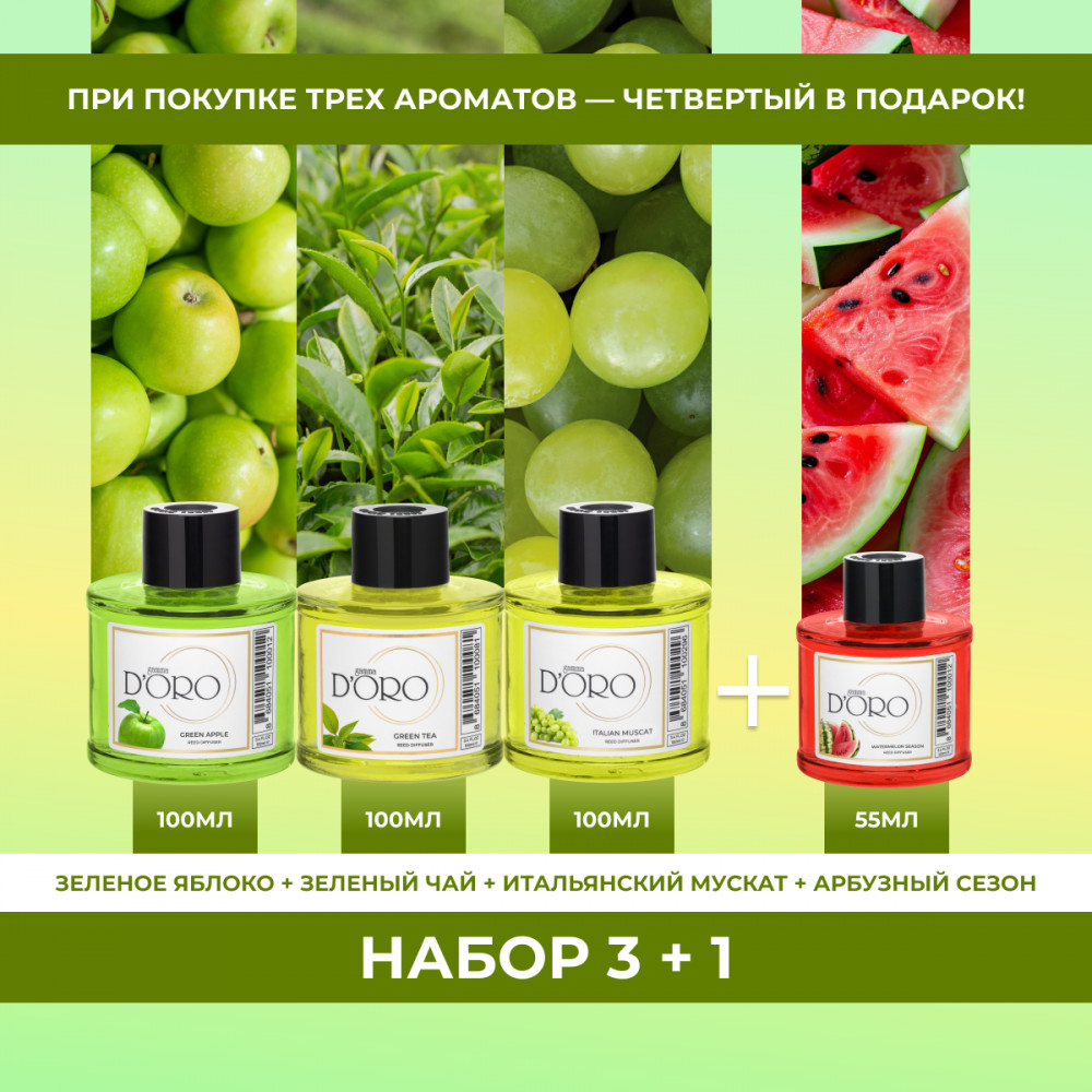зеленое яблоко, зеленый чай, арбуз, мускатный виноград