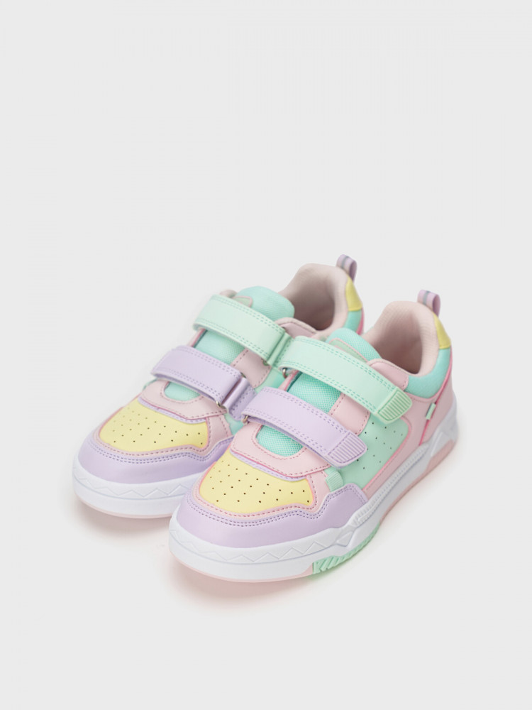 Трендовые кеды колор-блок для девочки подростка. Кроссовки выполнены из искусственной кожи, обладающей высокими эксплуатационными свойствами, и текстиля в качестве отделки. Профилированная съемная стелька из свиной кожи с анатомической формой подсводника обеспечивает правильную нагрузку на стопу. В носочной части обуви стоит текстильная подкладка c высоким содержанием хлопка 80%, которая обладает высокой гигроскопичностью. В пяточной части обуви текстильная подкладка обладает хорошей износостойкостью. Две липучки создают удобство при обувании и надежно фиксируют ногу. Формоустойчивый задник поддерживает стопу в правильном положении. Эргономичная форма колодки обеспечивает правильное формирование стопы ребенка. Подошва из ТПР не скользит и устойчива к истиранию.