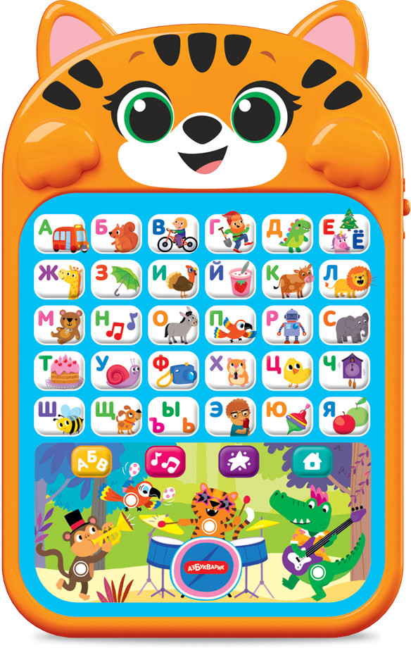 Азбукварик Планшетик-зверюшка «Азбука с Тигрёнком»В данный момент этот товар отсутствует в продаже. Возможно, у нас найдется аналогичный или похожий товар здесь. Планшетик-зверюшка «Азбука с Тигрёнком» превратит знакомство с буквами в увлекательную игру. Вместе с забавным Тигрёнком Ваш малыш не только легко запомнит алфавит, но даже споёт его! А ещё ребёнку непременно понравится разнообразие игр. Их в планшетике целых 5! И не просто весёлых, а развивающих! Игры «Азбука с Тигрёнком» и «Знайка» помогут быстрее запомнить буквы, предлагая отыскать их на картинках и в словах. Игра «Запоминайка» развивает память, «Угадай звук» — слуховое восприятие, «Загадки Тигрёнка» — логику и мышление. А если захочется сделать паузу и просто повеселиться, то любимые песенки-хиты непременно поднимут настроение! |