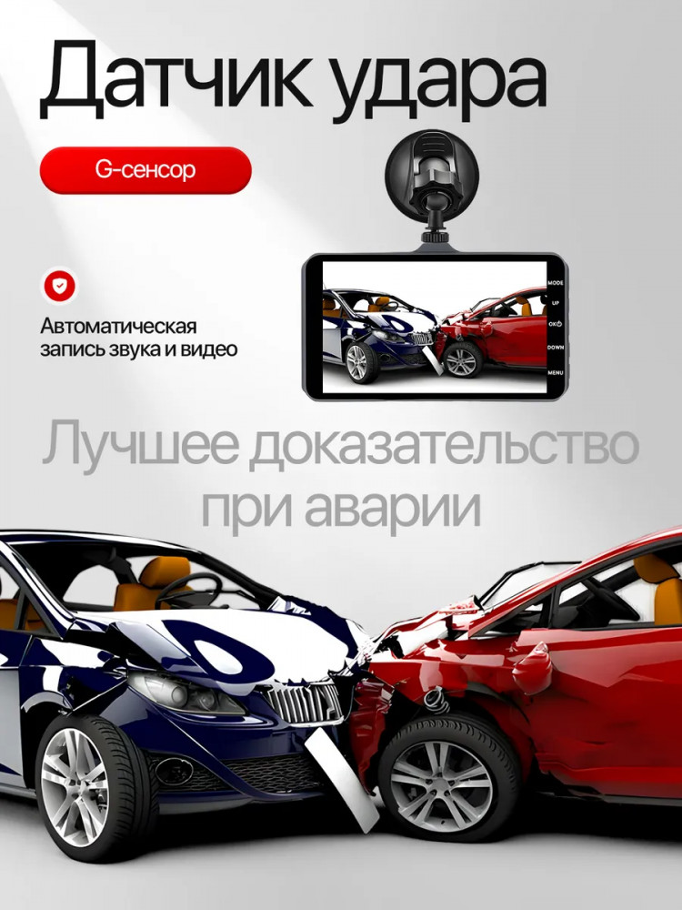 В данный момент этот товар отсутствует в продаже. Возможно, у нас найдется аналогичный или похожий товар здесь. Видеорегистратор 2 в 1 для автомобиля: профессиональный и надежный помощник на дороге. Этот уникальный прибор с сенсорным экраном оснащен двумя высококачественными объективами — фронтальным и камерой заднего вида. Он обеспечивает циклическую запись видео, фиксируя все важные события на дороге. Благодаря функции циклической записи, старые файлы автоматически перезаписываются, что исключает остановку записи.