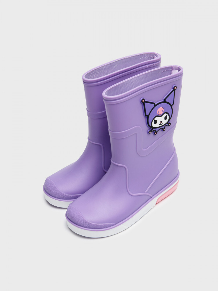 Резиновые сапоги детские для девочки. Сапоги из легкого ПВХ имеют яркий дизайн. Объемный яркий патч KUROMI сбоку сразу привлекает внимание ребенка. Текстильная съемная стелька c высоким содержанием хлопка 80% обладает высокой гигроскопичностью. Сапоги имеют удобную форму колодки. Подошва не скользит и устойчива к истиранию.