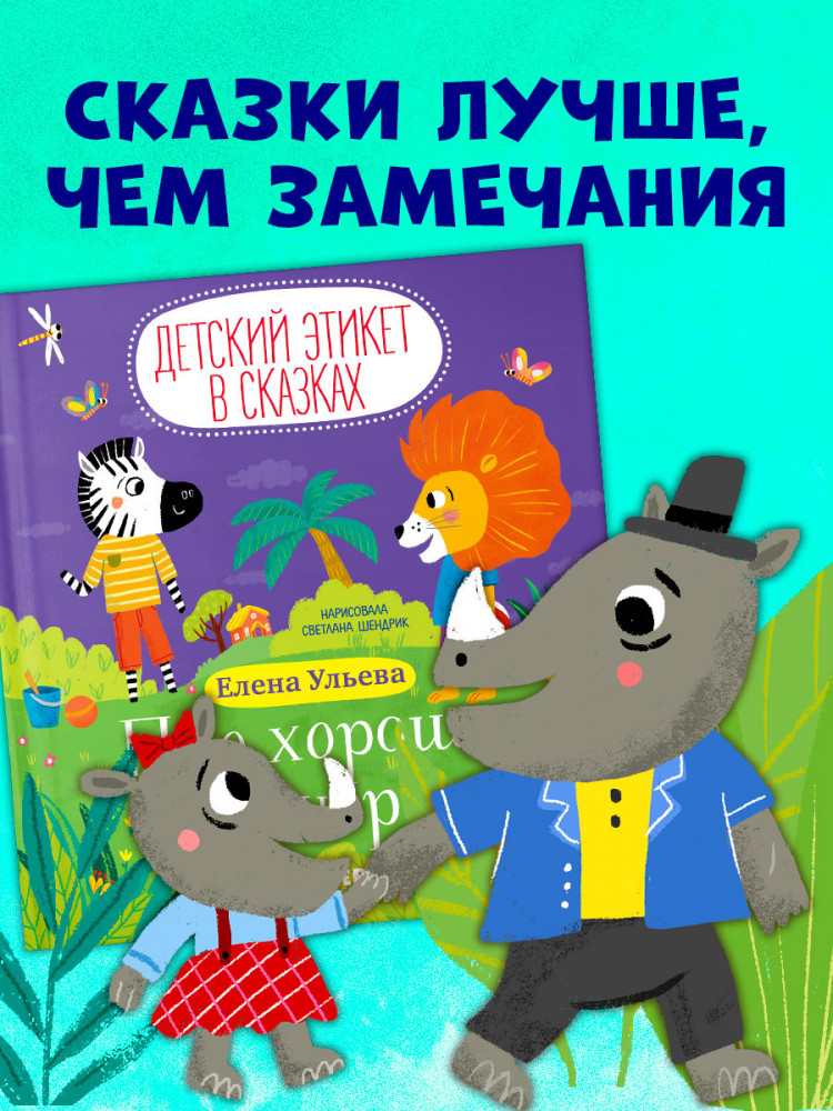 В данный момент этот товар отсутствует в продаже. Возможно, у нас найдется аналогичный или похожий товар здесь. Серия: Детский этикет в сказках Сборник коротких историй «Про хорошие манеры» — сказкотерапия от популярного детского писателя Елены Ульевой. Книга понравится малышам, а родителям поможет обсудить с ребенком важные темы — вежливость, уважение к другим, дружба.