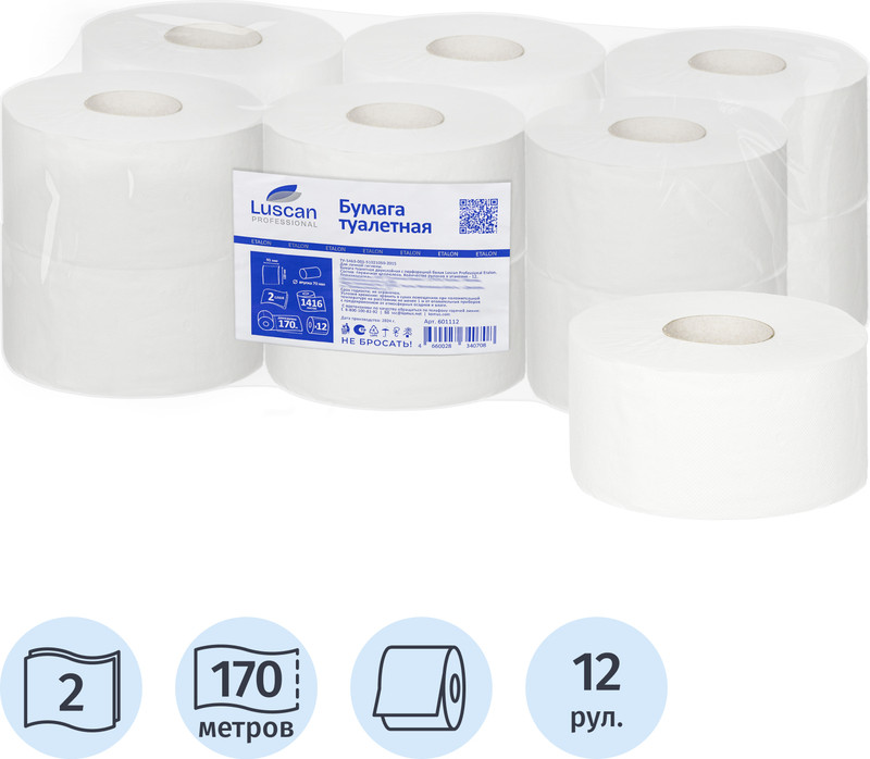Luscan Professional Туалетная бумага для диспенсеров двухслойная T2/T10