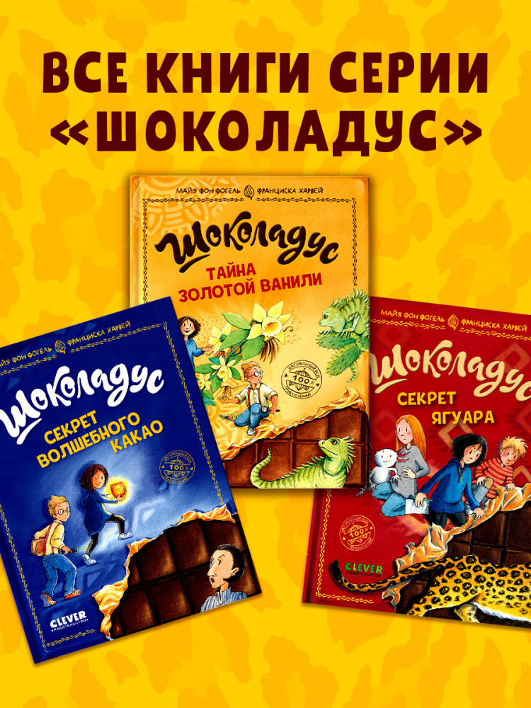 Серия: Шоколадус «Шоколадус. Секрет ягуара» — продолжение захватывающих приключений отважных ребят, которые ищут семь ингредиентов для волшебного напитка — какао счастья. Дружба, тайны, магия племени майя, шифры и много-много шоколада — скучно не будет! |