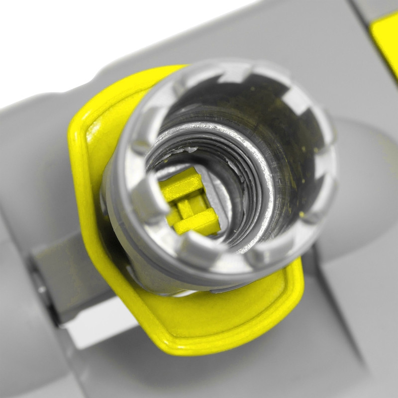 Рекомендации по использованию: перед началом работы убедитесь, что закручивающееся кольцо хорошо затянуто, а фиксатор и защелки не выпали и не сломаны. После окончания работы сполосните держатель струей проточной воды для удаления абразивных частиц из соединительного узла, просушите. Используется с плоскими насадками (мопами) соответствующего размера.